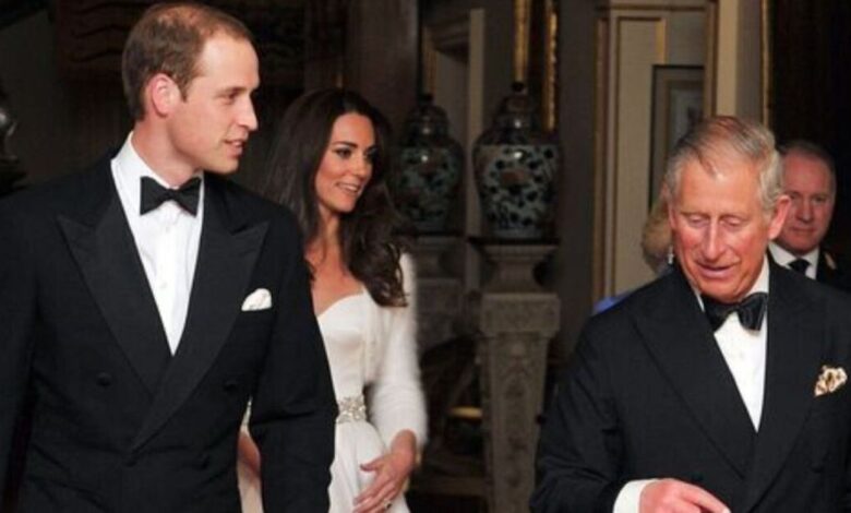 The Prince and Princess of Wales were seen heading into the evening celebrations at Buckingham Palace, where Catherine had changed into her understated second dress designed by Sarah Burton. (Image: Getty)