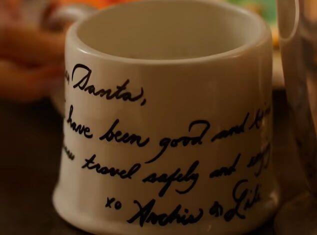 But bizarrely, the letter had been printed on a mug in the Duchess of Sussex‘s signature calligraphy – and although the full message remained unclear, the text visible read ‘have been good’ and ‘travel safely’ before being signed ‘Archie & Lili’.