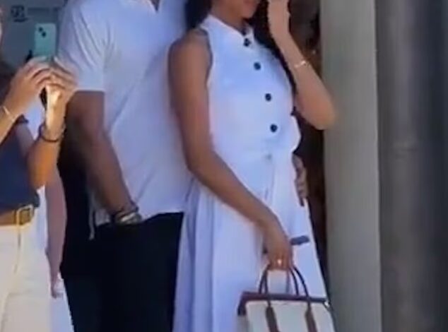 It is revealed that this monumental haul is not in the window of one of Manhattan’s swankiest department stores, but in the apartment where Meghan is staying, with Prince Harry suddenly appearing in the background, barefoot and with a beaming grin.
