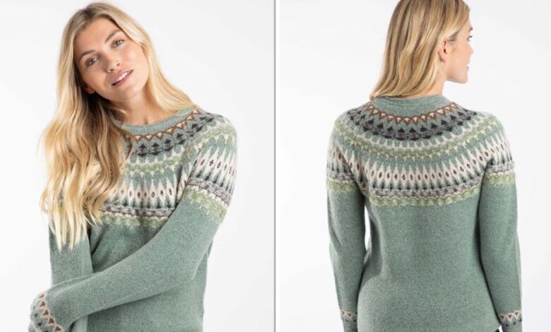 Shoppers can also save on a Fair Isle jumper from Boden. Its Fae Fair Isle Frilled jumper is a pale pink with a multicoloured pattern and frilled neckline and cuffs. It is now half price its original £99 price at £49.50. Made of a combination of manmade fibres and RWS certified wool and alpaca, it is still machine washable.