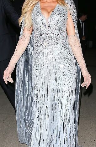 Paris, 44, looked incredible wearing the ice blue Lovebird dress to both the Baby2Baby event and Kris Jenner‘s 007 themed birthday party on November 8 – both of which were attended by Meghan, 44.