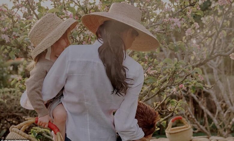 She recalled ‘strolls’ through the garden with Harry, Archie, Lilibet and their two pet dogs and how sage served as the backdrop of their family’s ‘sun-drenched moments’ together. ‘Those strolls, with Archie and Lili running in tow, her husband checking on the bees, Pula chasing the ball with Mia trying to keep up — those were the sun-drenched moments that made an everyday walk something a bit more magical,’ said the newsletter. ‘And that sage, that purple, that scent around the garden, was always there in the background.’