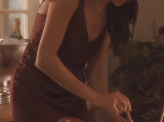 On X, formerly Twitter, some users took issue with her outfit and holiday photo shoot, as one user typed, ‘Nothing screams authenticity quite as remarkably as a woman, basting a chicken, in a satin frock, without an apron…’
