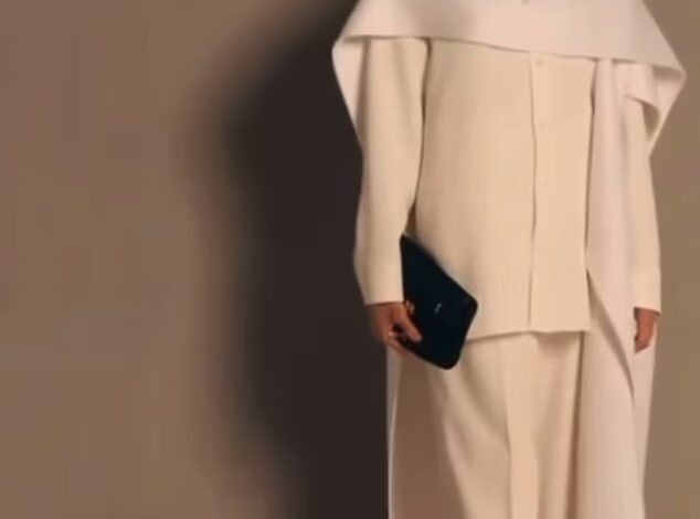 Cutting an elegant figure in a stylish white oversized button-through ensemble with an incorporated cape, the star had a full style squad – and a luxury place to reside – for the fleeting visit.