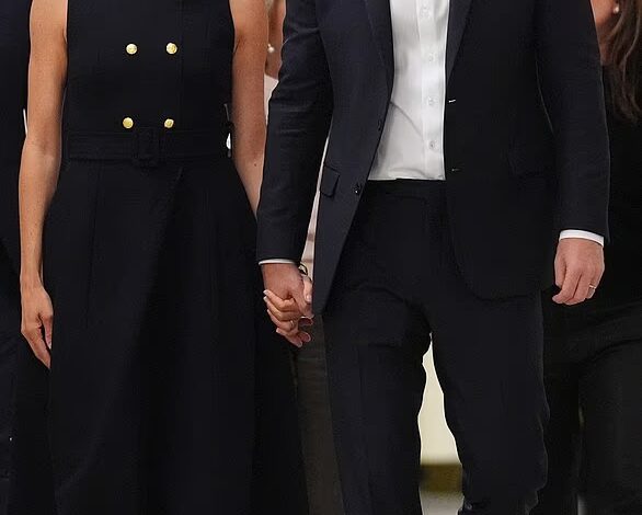 Pictured: Harry and Meghan during the Super Rugby match between the NSW Waratahs and Moana Pasifika at Allianz Stadium in Sydney