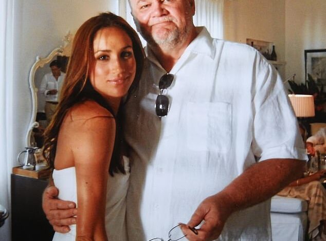 Meghan is pictured with her father when she was younger. The duchess would later state in interviews, including her infamous chat with Oprah Winfrey in 2021, that she felt betrayed by her father speaking to the press and sharing private communications