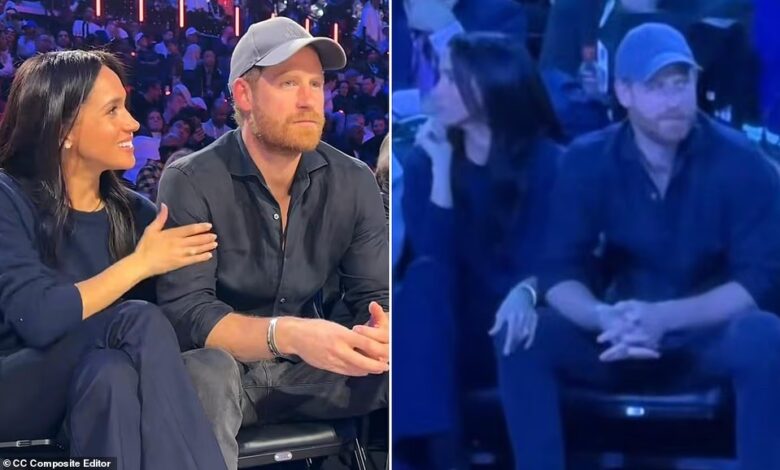 Meghan Markle showed she is still head over heels for her ‘forever Valentine’ Prince Harry at the NBA All-Star Game following a weekend of date nights for the royal couple. Meghan spent much of the basketball match with her hand on her British husband’s leg and he responded by putting his arm around her at the Intuit Dome in Los Angeles on Sunday. But with sports-mad Harry’s head in the game, his wife needed to rub his arm to nudge him to smile and pose when the NBA’s social media team arrived at the start of the 75th All-Star Game. Harry’s serious expression turned to a grin and he waved enthusiastically to the camera while saying ‘hi’.