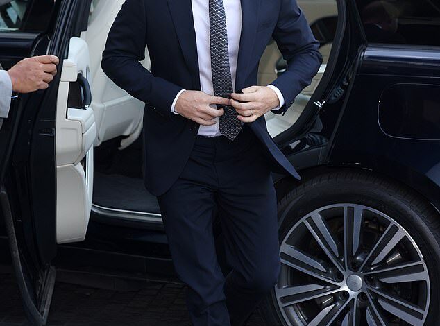 Harry also spent around 50 minutes having tea with King Charles at Clarence House on the Wednesday – their first face-to-face meeting in 18 months. Pictured: The Prince leaving the meeting