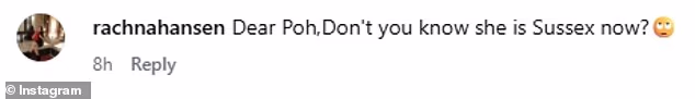 ‘Oh Poh,’ messaged one fan of the MasterChef judge in the comments, while another added, ‘Dear Poh, don’t you know she is a Sussex now?’