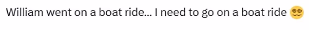 ‘William went on a boat ride… I need to go on a boat ride,’ one royal fan commented, comparing the two pictures.