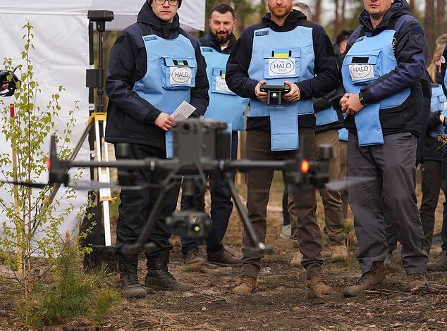 Prince Harry praises ‘courage’ of landmine clearance charity and flies AI-powered drone during Ukraine visit – as he again emulates mother Diana by joining HALO Trust in minefield