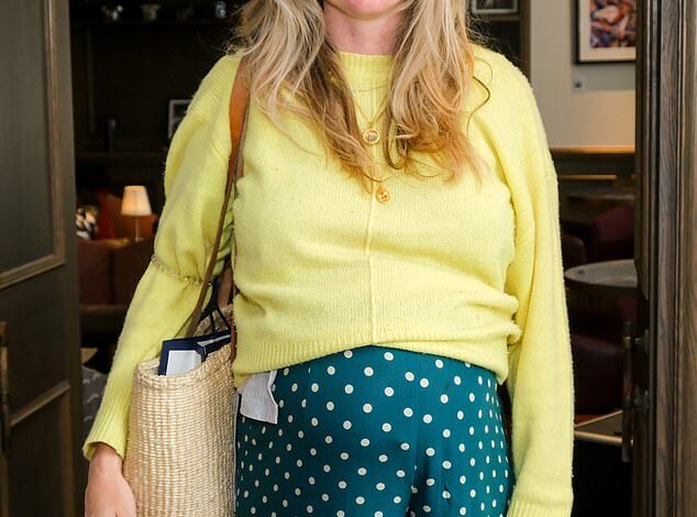 ‘I am now well into my second pregnancy,’ she wrote in The Spectator magazine. ‘Having conceived through IVF the first time, we were fortunate to have another embryo stored away in a freezer.’