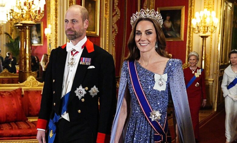 Earlier today, the royals staged a spectacular welcome ceremony full of pomp and pageantry as the guests arrived in the UK. For tonight’s banquet, Princess Catherine’s look was steeped in elegance and symbolism.