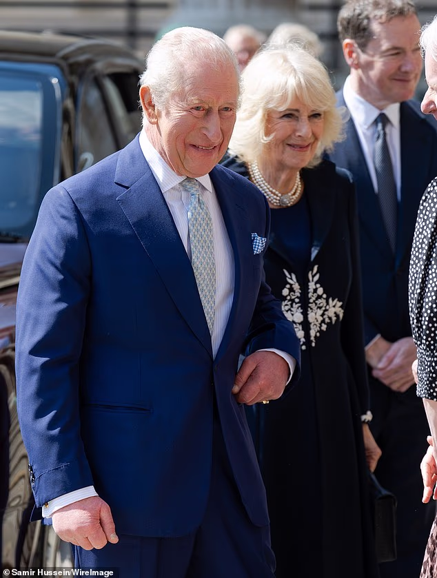 At yesterday’s palace reception, the King was accompanied by all the working royals in honour of what would have been his late mother’s 100th birthday.