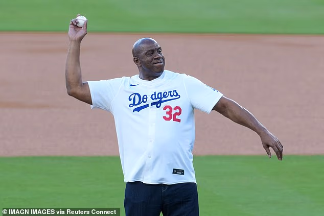 Sanity is restored at the World Series as Magic Johnson throws first pitch… a day after being relegated for Harry and Meghan