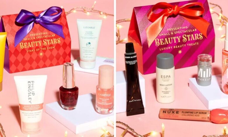 Stars of the Show features a selection of minis, including a Rituals body cream and an OPI nail polish, while Luxury Beauty Treats contains luxury minis from sought-after brands such as Nuxe and Sol de Janeiro.