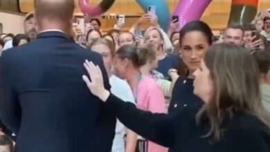 Tense moment Meghan Markle appears to GLARE at an adviser as footage captures the subtle act that made the Duchess drop her smile