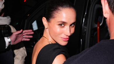 Meghan Markle turns heads in a plunging black blazer while accepting humanitarian award in New York