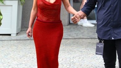 Kim Kardashian wobbles in sky-high stilettos on cobblestone street in Brazil after deleting photos with Meghan Markle