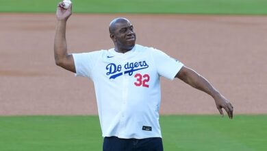 Sanity is restored at the World Series as Magic Johnson throws first pitch… a day after being relegated for Harry and Meghan