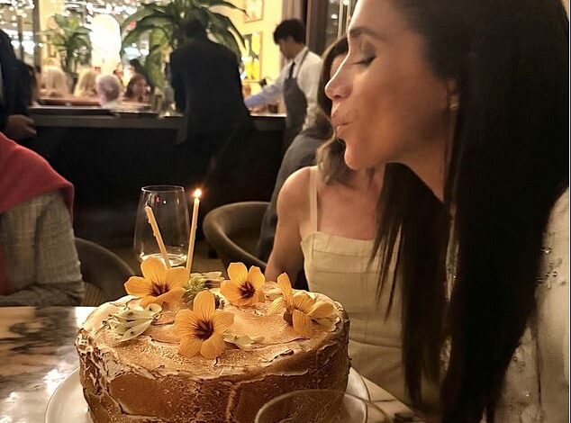 ‘Blowing out the candles on a beautiful 24 hours, and thanking my husband, friends and family for making it so special,’ she captioned the celebratory post.