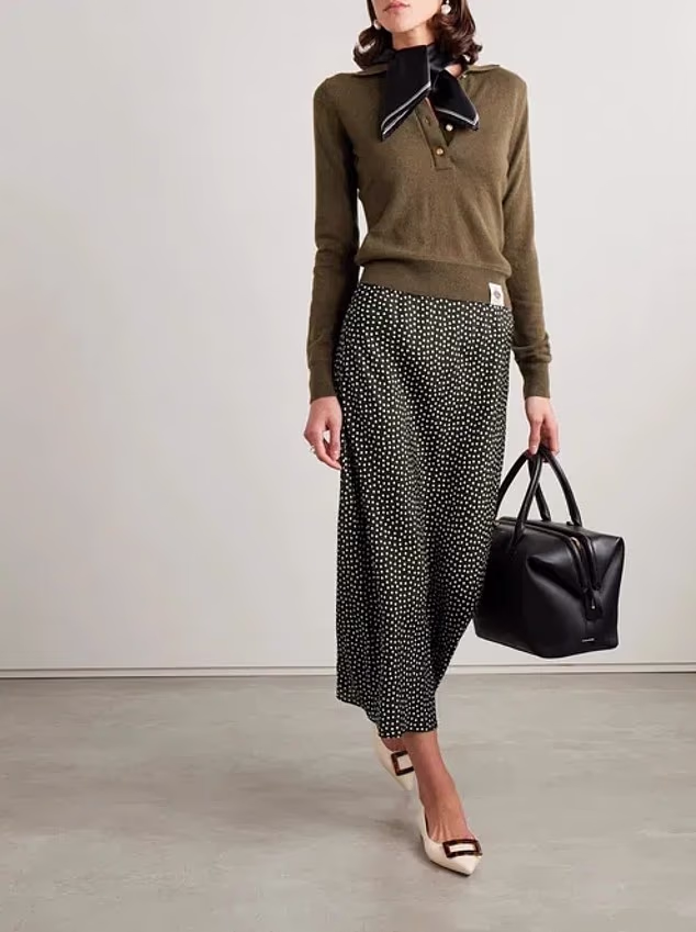 Seen preparing reusable Advent calendars for Archie and Lilibet, she looked effortlessly polished in the ribbed A-line design, complete with an elasticated waistband.