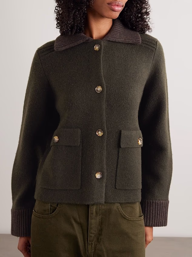 Rendered in this season’s must-have khaki hue, the luxurious knit features a classic collar and patch pockets – making it the perfect throw-on piece for winter walks and everyday errands.