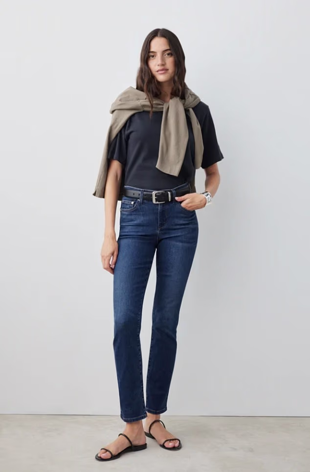 Rendered in a versatile indigo wash, the timeless slim-leg cut elongates the silhouette, whether styled casually with flats or dressed up with heels.