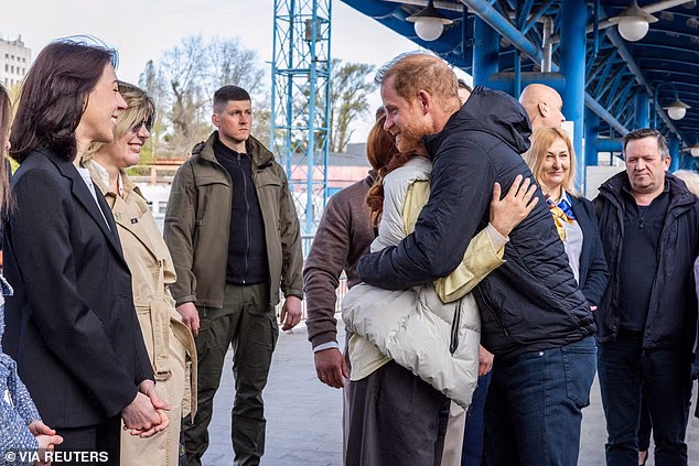 Harry arrived in Kyiv by train yesterday having spent last week in Australia with Meghan on their controversial pseudo-royal tour.